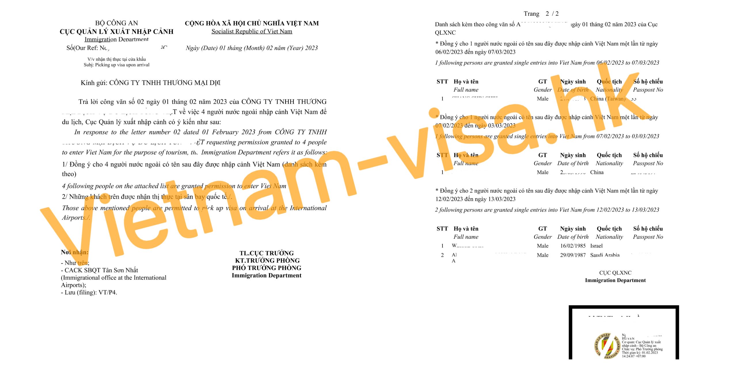 首先您收到的事簽證核准信函:這張簽證核准信是使用於登上飛機和在抵達越南機場時獲得簽證的必要條件。這封信函不適用使用拿簽證在任何越南駐使館領事館。