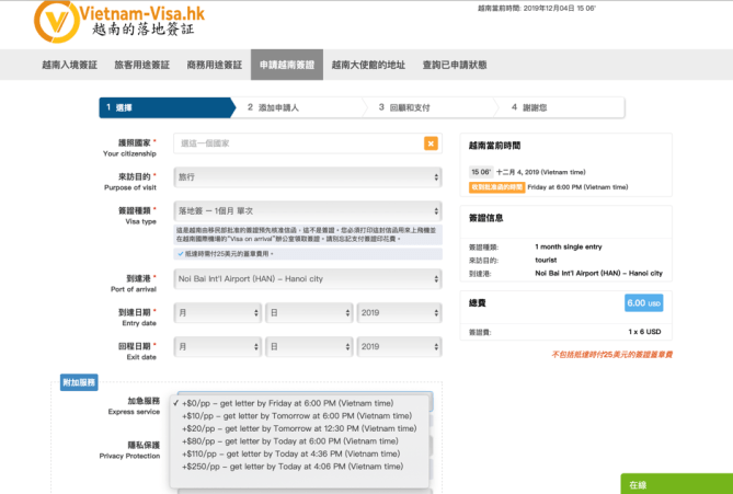 申請步驟:在本網站填寫網上申請表: https://www.vietnam-visa.hk/apply-vietnam-visa/