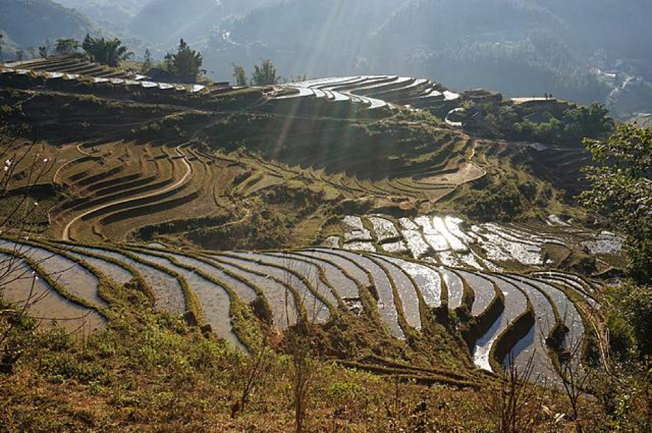 沙壩是越南其中一個稻米產地,群山的梯田,綿延如帶,美不勝收,它們是旅人前來沙壩的主要目的。來到沙壩不要只待在鎮上,一定要做的是山野健行,沿途眺望萬畝千階的梯田。在沙壩鎮的四周有幾十個部族村落,健行沿途會經過原住民居住的地方,進入大部分的村落參觀需要付入場費。距離沙壩鎮最近的是貓貓村(Cat Cat Village),可以步行到達。