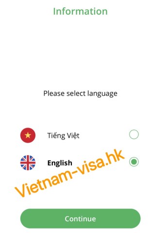 2.打開PC-COVID應用程序並選擇語言。只可用越南語和英語: