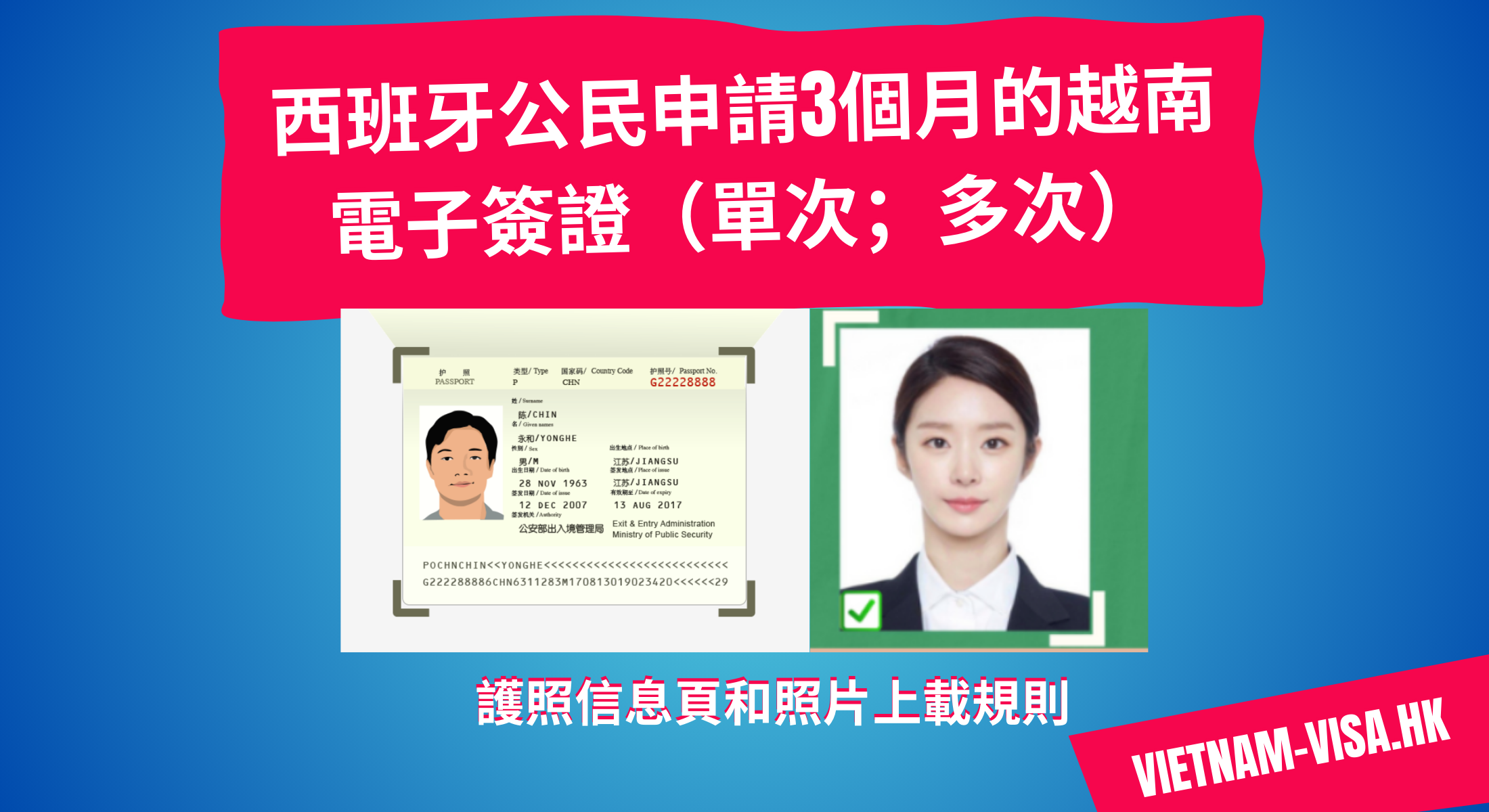 本網站特給西班牙代辦越南電子簽證包括緊急服務(最快在一個工作小時內收到),保證簽證成功100% – 不成功的話保證全格退款。