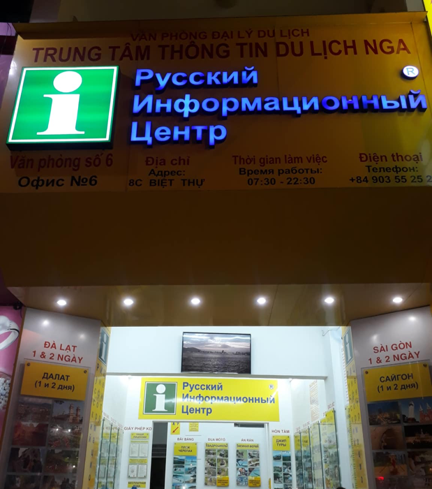 在芽莊的街上你會看到很多印有俄文的招牌,餐廳、酒店、旅遊景點甚至電視頻道也有俄語。以前越南跟前蘇聯關係密切,兩國交流緊密,聽說以前的越南人在學校里要學習俄文,因此有老一輩的越南人還懂得說俄文。