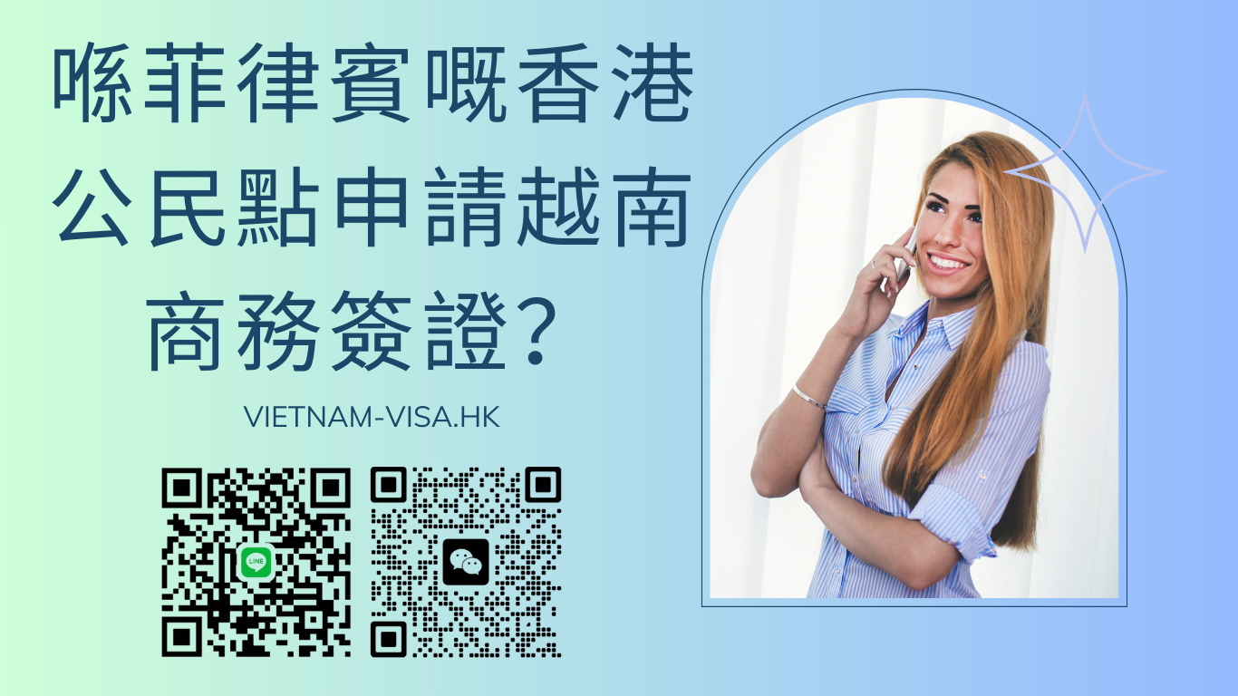 越南商務簽證招畀計畫前往越南出差、考慮市場、合作、參加會議或進行商務活動。越南商務簽證俾你喺越南境內停留最長90日,以處理業務事宜。喺菲律賓嘅香港公民有三種申請越南商務簽證嘅方式: