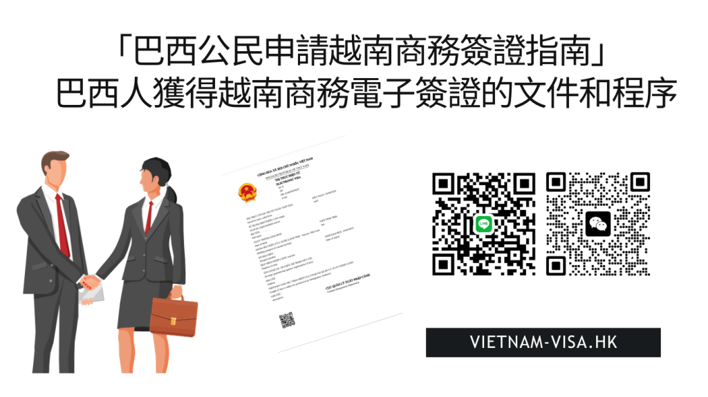 - 長期商務簽證:對於計劃在越南長期工作或居住的巴西人,可申請有效期6個月至1年的長期商務簽證(但是此簽證必須有越南公司擔保)。