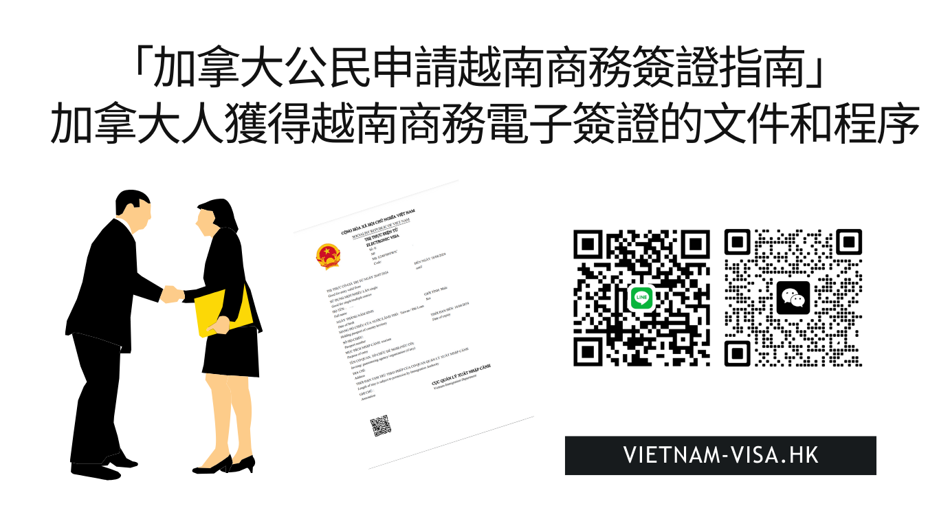 - 長期商務簽證:對於計劃在越南長期工作或居住的加拿大人,可申請有效期6個月至1年的長期商務簽證(但是此簽證必須有越南公司擔保)。