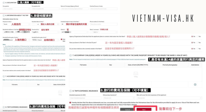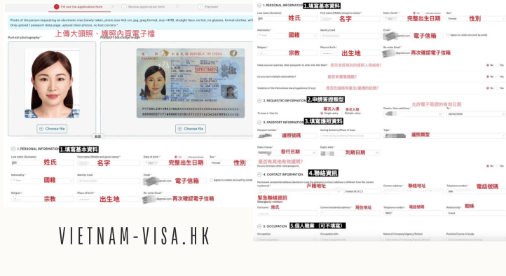• 線上填寫簽證申請表格:https://www.vietnam-visa.hk/apply-vietnam-visa/ 。
